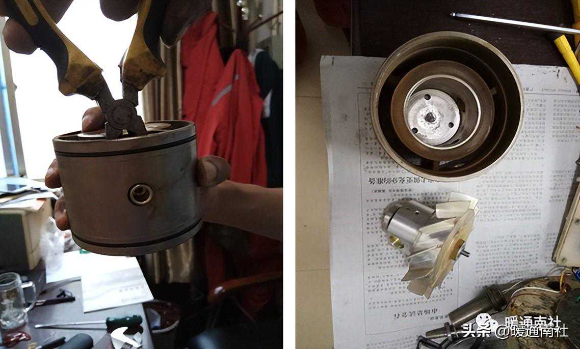 7、取出机芯油针、拆叶轮、拆后盖螺栓取出机芯