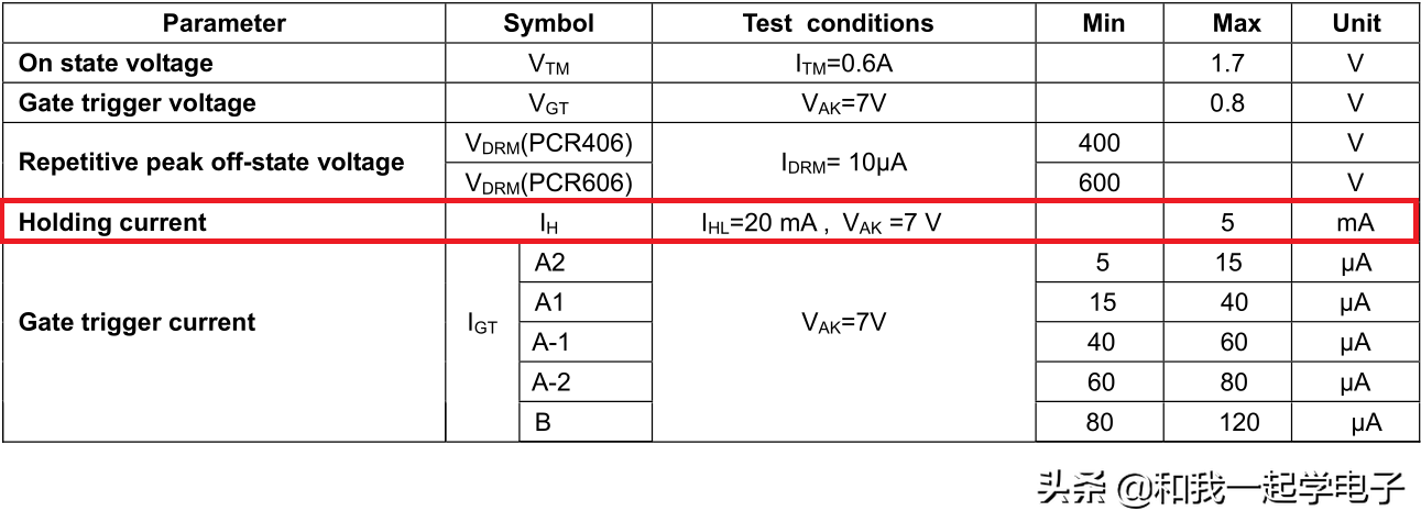 2.维持电流——维持电流表示导通后的晶闸管流过的电流小于其值时,晶闸管将关断
