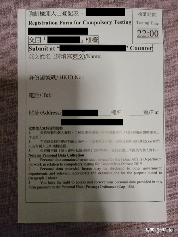 我向工作人员说了家里有俩娃已经睡下的事情,工作人员表示他们很理解年纪太小的小孩半夜下去做检测很困难,所以容许六岁以下的小朋友后来补交便便样本。样本樽没有写规定的日期或时间要上交,只是给了一张地址列表交到指定的诊所。我家俩娃在经过了这一通封楼后便秘了一天,两天后才有便便样本,当然,这都是后话。