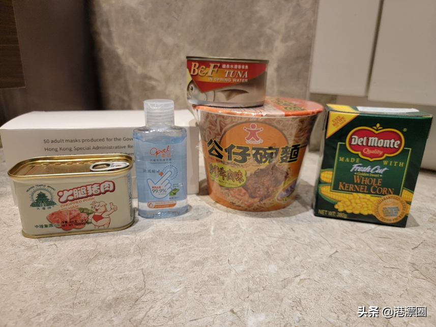 杯面*1,汤*1,罐头*2,搓手酒精*1,口罩*1盒