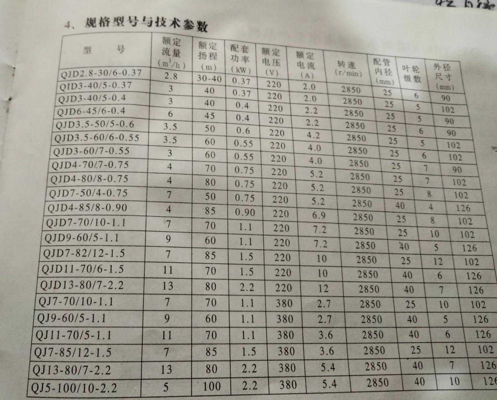 100QJD2-40/8-0.55,一共是七组数
