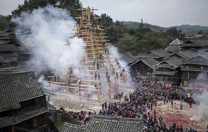 ▲三江同乐响,一座新风雨桥落成,在举办庆典。风雨桥是锁住村寨福气的风水桥,侗族人会集全寨的财力、物力修建。风雨桥的建造过程与礼俗仪式相伴,开工挖基脚要烧香,举行开槽仪式;上梁立屋架有隆重的上梁仪式;建成后全寨人要来“踩桥”庆祝,烧香拜神。摄影/覃美春