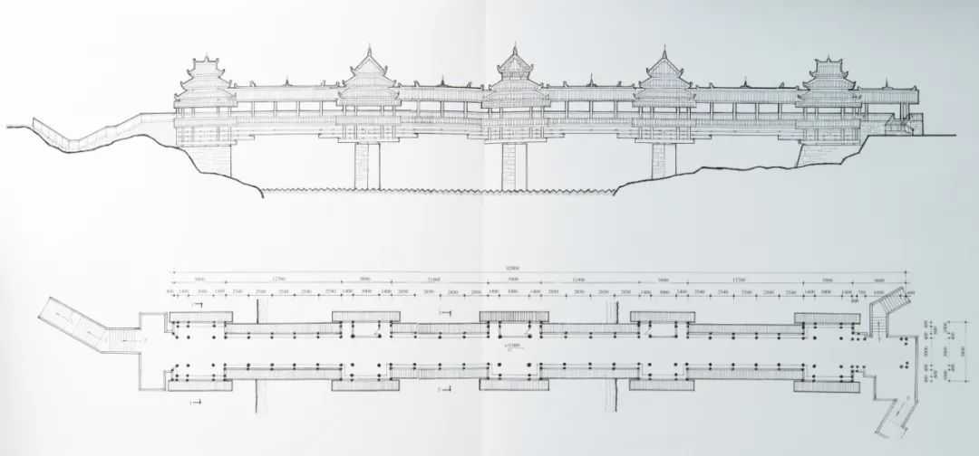 ▲永济桥立面图。图源/《广西三江侗族自治县鼓楼与风雨桥》