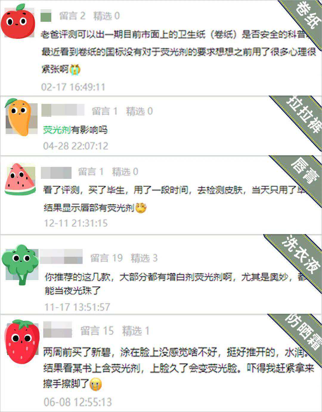 通过近几年的评测和科普也能感受到,大家对于“荧光剂”的隐忧,远不止于此,而是体现在生活的方方面面——