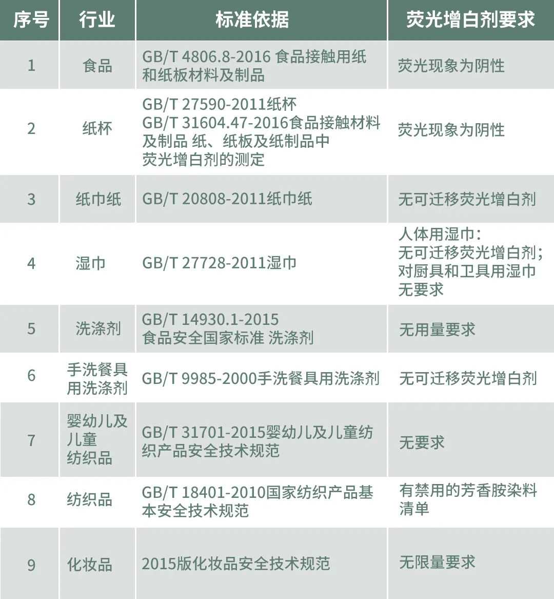 以下是我国对荧光增白剂的标准: