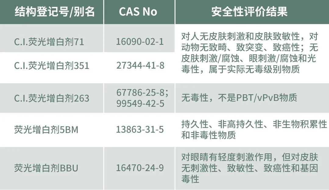 例如下述常见的几种荧光剂安全评价结果: