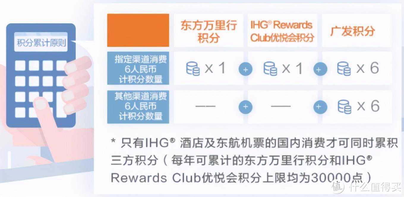 当然,如果在东航和IHG场景内消费,这张卡的性价比就凸显了,一次消费,累积三方积分。每年最多可获得3万东航里程和3万IHG酒店积分,和广发积分兑换的2.22万积分累加,每年最多可获得5.22万东航里程或5.22万IHG酒店积分。