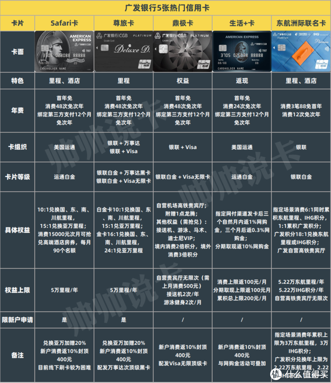 可能还有小伙伴纠结广发首卡该选哪张,这个问题帅帅之前就已详细分析过,不要再提犀利卡,这已经是老黄历了,现在广发首卡唯一推荐的就是尊旅卡。