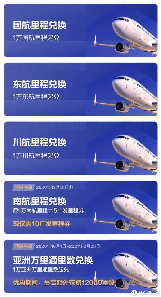 10:1兑换国、东、南、川航里程,15:1兑换亚万里程,年上限5万里程。这个比例和上限说不上神,但是称其“优秀”还是没问题的,比例已经超越了很多刚性年费的信用卡。现在兑换亚万里程还能加赠20%,相当于12:1兑换亚万里程,这对于一张可刷免年费的信用卡来说已经足够好了。