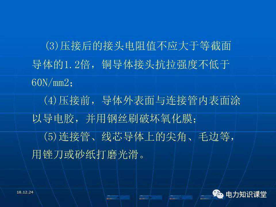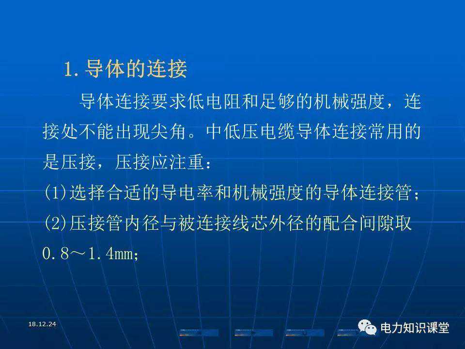接头的接触电阻应小而稳定,能经受故障电流冲击,运行中接头电阻不应大于电缆线芯本体同长度电阻的1.2倍。
