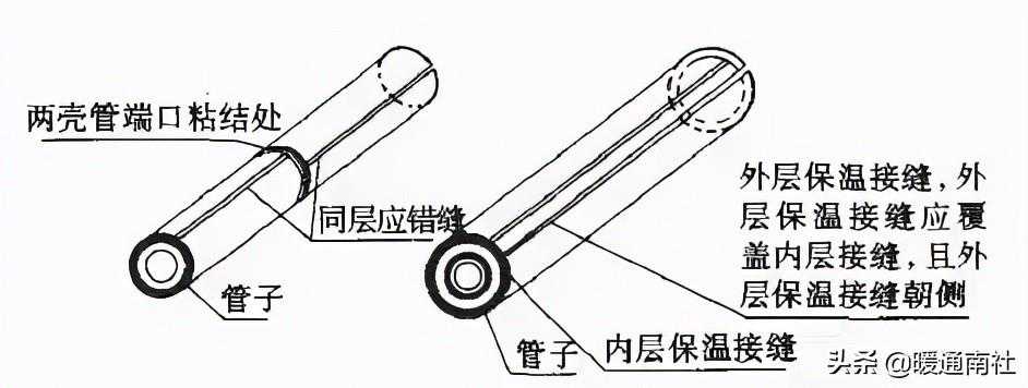 一般情况下都会认为直管段比较容易保温,没有什么技术含量,只要将管子包住就行了,一般的保温工也不愿花太多工夫去琢磨,但人们必须抛弃这样的观念,实际上直管段的保温也很讲究,如果保温交底不正确,无严格的检查,则容易出现接缝开裂、鼓胀等缺陷。对于需要两层保温(如一层20mm,一层25mm)的管子来说,内层应先包20mm的板材,外层包25mm的板材,因为内层的管径小,对20mm的板材容易弯曲,25mm的板材由于本身厚度的原因需要更大的曲率半径,这是直管段保温的先后顺序;如果是非水平的直管段,还应遵循自上而下的原则;在保温过程中,内层拼接缝应错位(即确保内层的接缝不在同一直线上),内外层应盖缝(即内外层的接缝不在同一平面上),且外层的水平接缝应处于侧面部位;壳管段对接的两个端口在涂抹胶水时应用废、碎料制成的环条覆盖,以免胶水外漏并且可以更加密实,尽量避免对已粘结好的拼缝再补胶水,做到胶水涂抹一次充分、均匀。