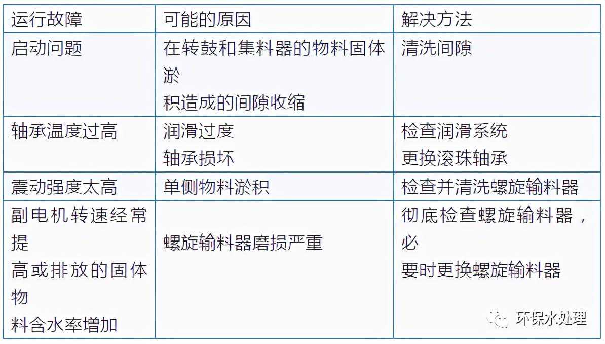 注:如在运行当中发现分离液混浊或泥饼过湿,则检查皮带张紧度、螺旋输料器的磨损情况、离心机润滑维护表及润滑油脂表。