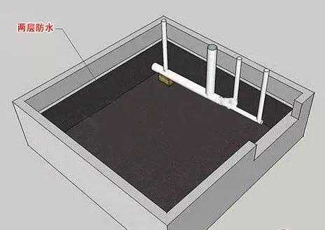 步骤1:做两遍防水涂料,这两遍防水一定要连墙体一起做,墙体做的高度要高出沉箱上沿40厘米以上。保证上层渗的水不会往周边扩,只能往地漏排出。