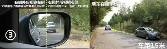可通过后视镜判断车距。如果感觉后车跟车过近,可以适当轻点刹车,提醒后车保持距离。