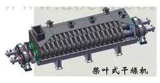 盘式干化工艺:分为卧式圆盘干化和立式多盘干化。先用外部热源加热一个油炉,再通过油体将热能传到干燥盘塔吊构造为一个固定体,形成一个水平外壳,其内部旋转部分由一个管状空心轴,轴上固定一些空盘,盘中充满蒸汽等,还有一些搅拌叶片用于输送物料。热媒介通过中心轴进入圆盘,同时被分配到旋转体中。