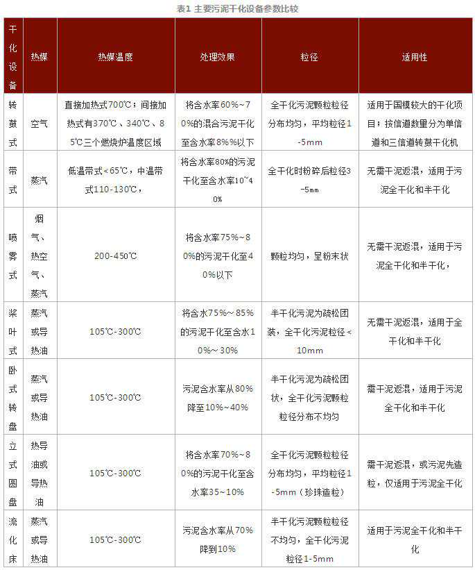 卧式转盘式污泥干化机:间接加热,热媒为蒸汽或导热油;需干泥返混,适用于污泥全干化和半干化;半干化污泥为疏松团状,全干化污泥颗粒粒径分布不均匀。