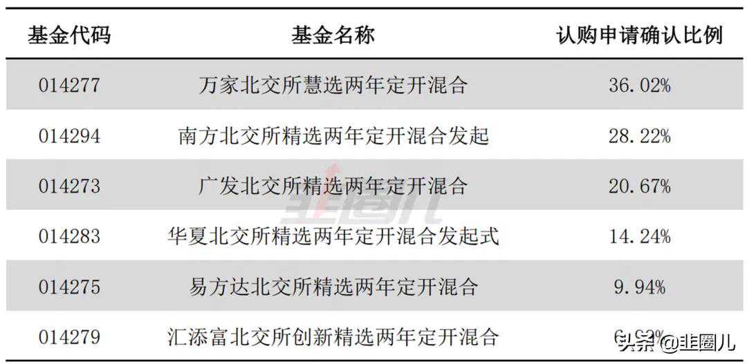 不出意外,上周五北交所主题基金销售异常火热,开售仅一个上午就已经售罄,最终开启了比例配售,很多小伙伴可能仅能配售到申购金额的6%-36%不等,真是申购了个寂寞。