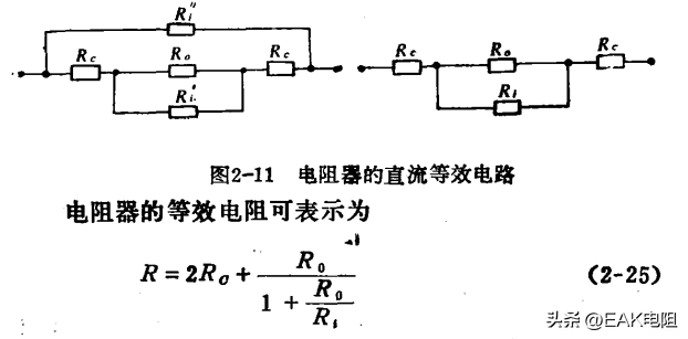 电阻器的结构比较简单,但在高频情况下,不能简单地把电阻器看成只是一个电阻分量的理想元件。电阳器实际上是由许多电阻、电感和电容分量组成的复杂阻抗系统,电阻只是其中的一个主要成分。因此必须研究电阻器的直流等效电路、高频等效电路和集肤效应及介质损耗对阻值的影响,并分析研究其性能表现。