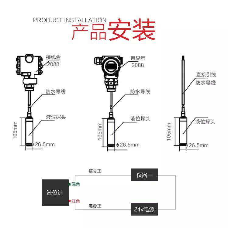 SC-500系列投入式静压液位变送器的传感器部分可直接投入到液体中,变送器部分可用法兰或支架固定,安装使用极为方便。