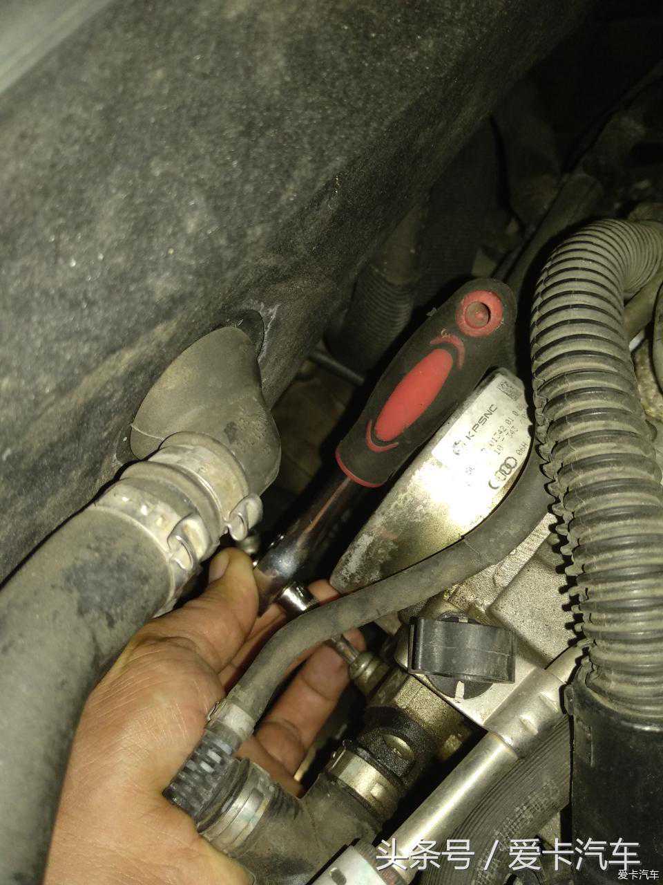 拆螺丝之前周边管路从卡子中拿出来腾出下手空间