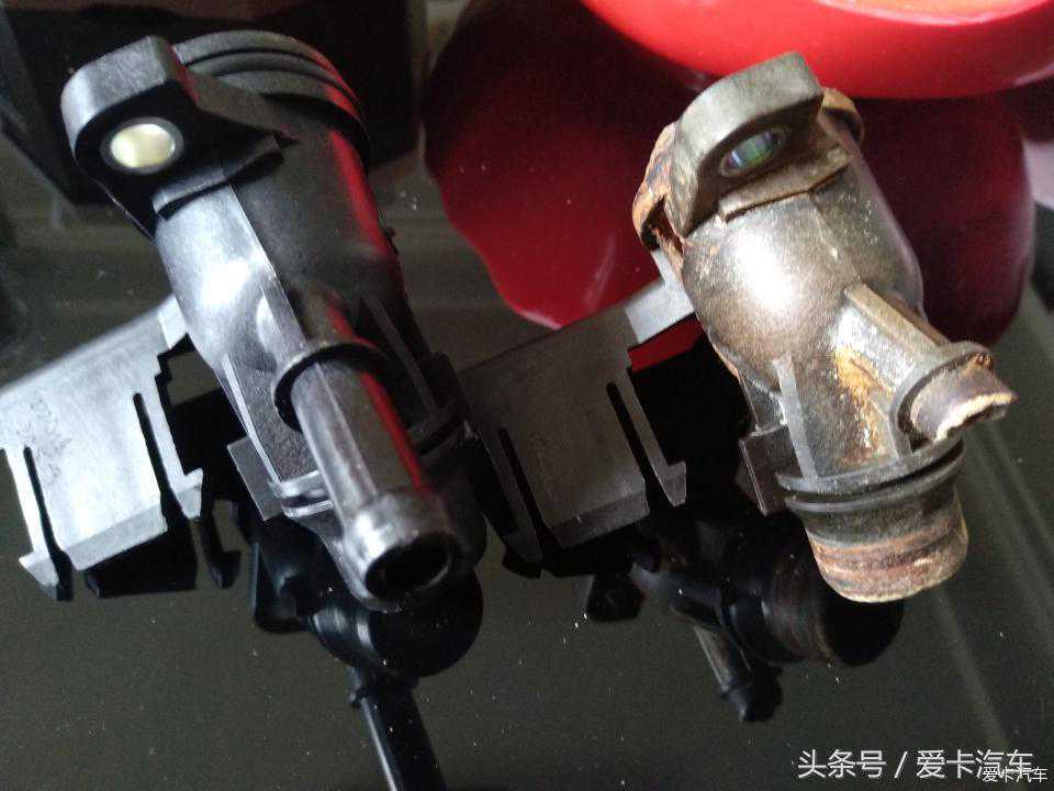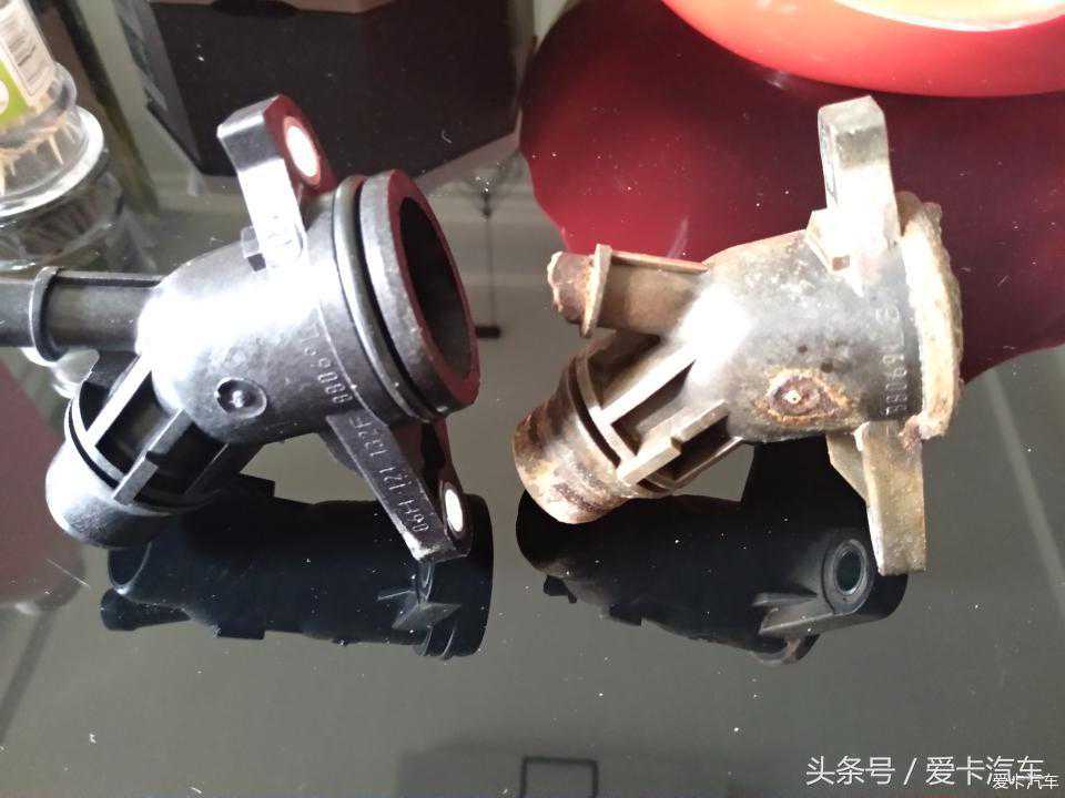这是新旧三通对比发现没有旧三通后面一节也断了断了的还在发动机上面晚上实在被蚊子咬的不行了就没有把断的拆下来