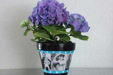 将照片装饰在彩绘罐上,作为个性化礼物。