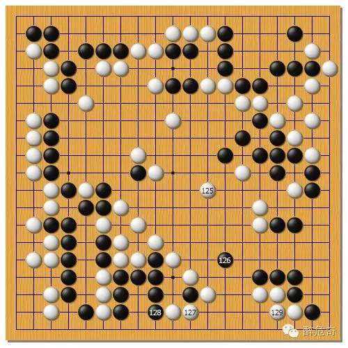 05谱白121扳头中间隐隐出现巨大的潜力,黑122手步伐依旧稳健,白123二路扳似乎预示着局面将要进入大官子阶段。
