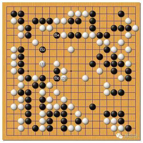 07谱黑132穿入白阵,白133逼迫黑132一子连回家,却遭到黑棋134夹的强烈一击。一直隐忍防守的吴,吹响了反击的号角。