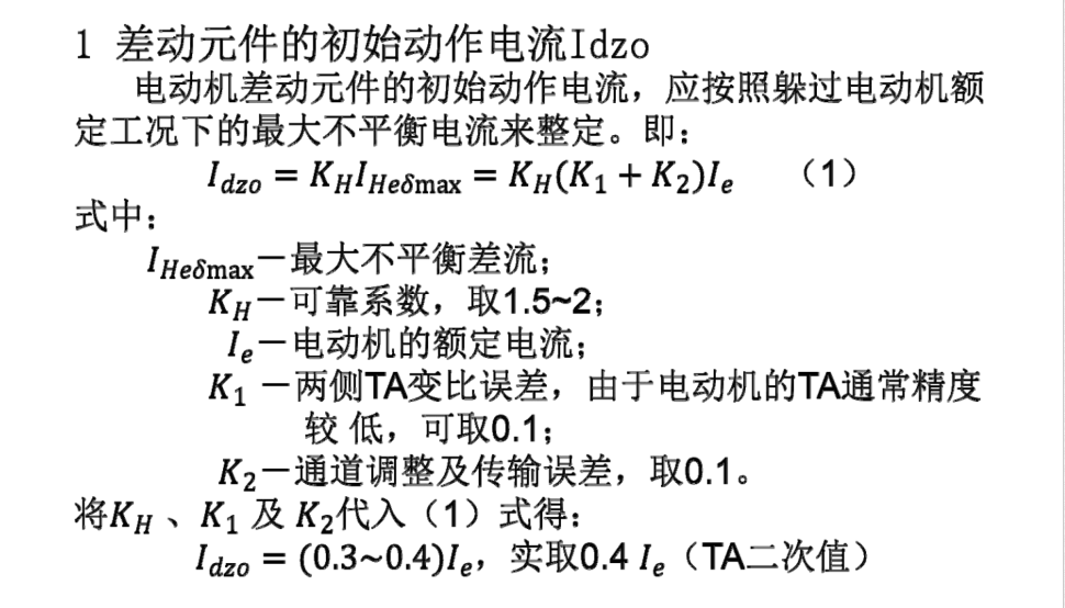 1、电动机的差动保护①差动元件的初始动作电流Idzo