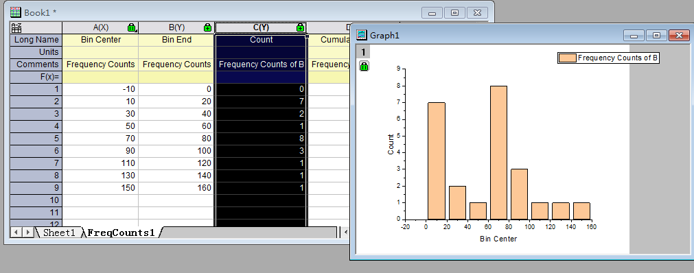 打开Excel文件,将Feret列数据拷贝到Origin中: