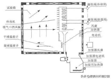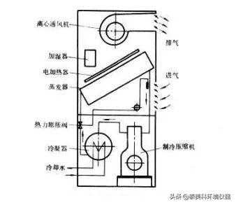 除湿方式有两种:机械制冷除湿和干燥除湿。机械制冷除湿的除湿原理是将空气冷却到露点温度以下,使大于饱和含湿量的水汽凝结析出,这样就降低了湿度。干燥器除湿是利用气泵将试验箱内的空气抽出,并将干燥的空气注入,同时将湿空气送入可循环利用的干燥进行干燥,干燥完后又送入试验箱内,如此反复循环进行除湿。
