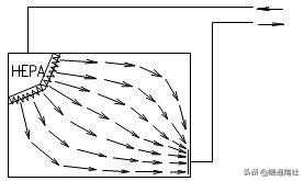 矢流洁净室是用圆弧形高效空气过滤器构成的圆弧形送风装置,经圆弧形高效过滤器送出的气流是放射形的洁净气流,流线不产生交叉,灰尘粒子也是被放射形气流带到回风口,回风口设在对面墙的下侧。矢流洁净室可用较少量的洁净送风来实现较高洁净度级别(5级)的洁净室。这种气流流型在美国和日本较多(在日本称为对角流),而我国在工程中应用较少。