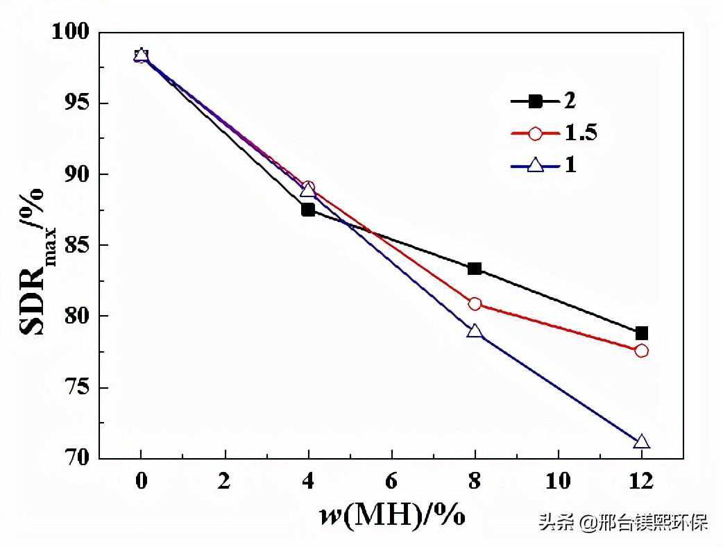 图2MH对PVC压延膜的最大烟气释放性能的影响