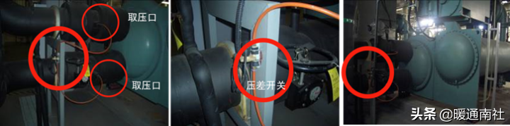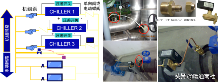 对于多冷水机组并联的系统,需要在冷水机组的换热器进出口取压,而不能在单向阀或电动蝶阀后取压,否则测到的是整个系统的压差。