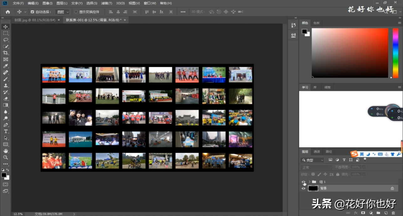 4.可以根据情况将背景进行所需的颜色填充,将置入所有照片选中群组Ctrl+G,方便统一管理