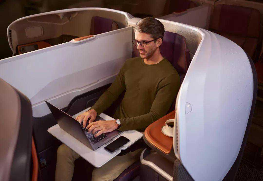 新加坡航空全新A380商务舱宽25英寸的座椅有两个侧翼,能提供更好的后背支撑,座椅可以转换成一张平躺式睡床,你可以以日光浴式的放松姿势全身舒展。座椅上更大的固定背壳营造出蚕茧般的感觉,提升了座椅的私密性。中间分隔器可以被完全降低,使两个中心座位转换成双人床,最适合家庭出行。