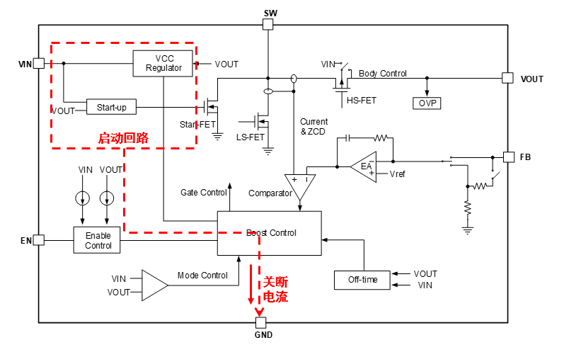 芯片在上述状态下,内部部分功能电路会一直处于工作状态来维持一些最基本的内务功能,这个内务便会持续消耗来自电池端的电流,例如图5所示的控制回路。