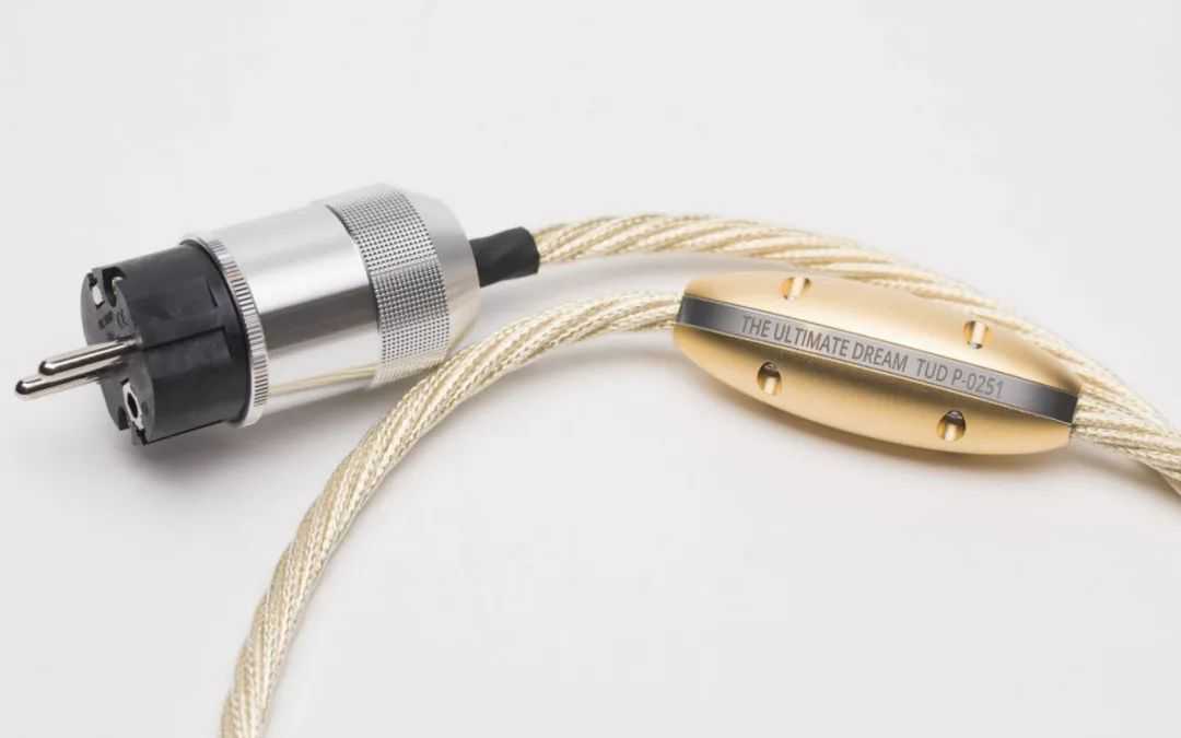 除接地外,该第7根线还能起到调整线材软硬度的作用。导线本身有4层屏蔽:第1层是双重Kapton聚酰亚胺,第2层是具有耐高温、耐腐蚀、抗老化等优异性能的PEEK聚合物,第3层是镀银单晶铜,第4层则是镀金单晶银,最后由一层透明塑料防护。该电源线两端的插头采用日本Oyaide顶级制品。TheUltimateDream的参考售价为12750美元/1米,其特色如下: