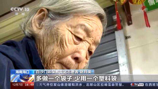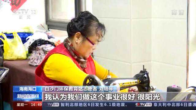 在海南海口有一个环保教育站,每天有数十位老年志愿者到这里分拣垃圾进行资源再利用。在他们中间,有一位83岁的老人名叫赵月英,她用废旧布料缝制环保布袋,免费送给市民或游客。三年来,她已累计送出了三千多个。