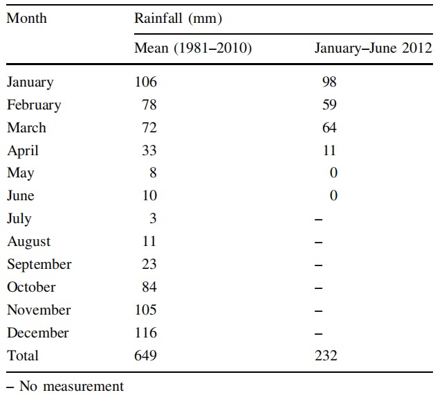 在进行调查的2012年1月至6月期间,获得了独立于假定补给率的滗液率估计值,通过构建煤矿的水平衡,利用测量量和估计量的信息,估算出了这一醒酒率,煤矿的雨量计提供每日的雨量数据,煤矿在其中一个矿坑内运行了一个水循环系统,以保持矿坑水位低于滗水器水位。