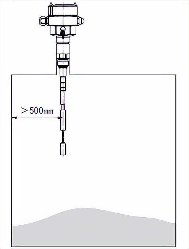 射频导纳料位开关具有耐高温、耐摩擦、耐腐蚀、耐冲击、抗挂料、维护简单等特点和优点,广泛应用于工业领域中大型罐体和料仓内粉煤灰、固体颗粒、粘附性物料的物位测量。其工作原理是通过探头感知其自身与储罐体间电抗(容抗和阻抗)的变化来实现料位的测量和控制。缆绳型射频导纳料位开关专门用于顶装且探头长度大于2米时的工况,绳式组件下端连接探头,探头具有较高的适用性及可塑性,可以根据实际工况适当延长。缆绳型射频导纳料位开关的结构不算复杂,在安装时,除应遵照通用型射频导纳料位开关的安装要求外,还应注意安装的位置及其他事项。本文将结合缆绳型射频导纳料位开关的安装图,就缆绳型射频导纳料位开关的安装及注意事项介绍如下。