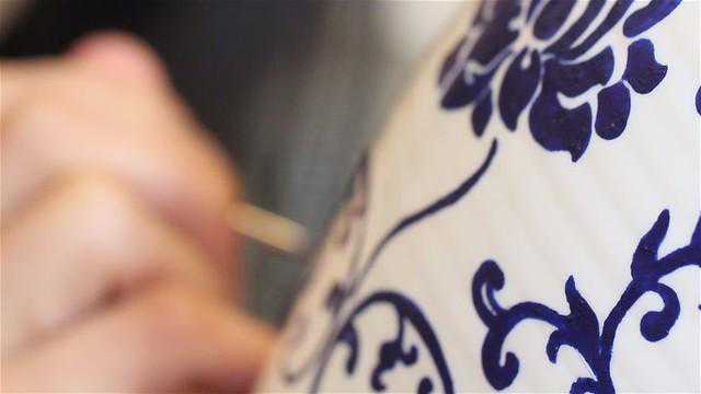 抛光花瓶再手绘青花