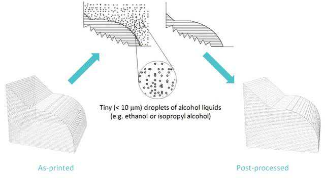 细小的酒精液珠溶解3D模型表面形成光滑的效果