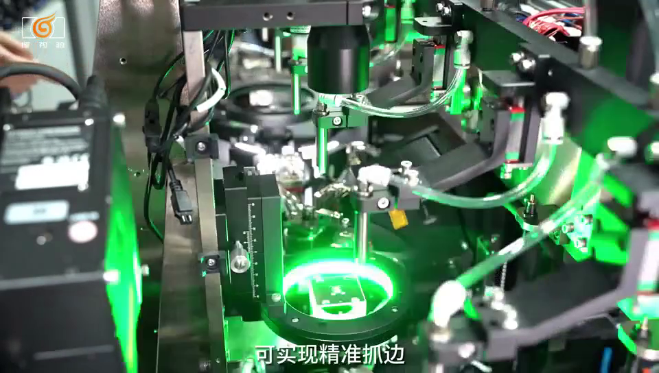 视觉模组上设备配备了五个测量工位,内含6个CCD面阵相机和4个3D线扫相机。相机的自动调距功能实现了产品高低面的多图层抓取,在复合光源配合下可实现精准抓边。