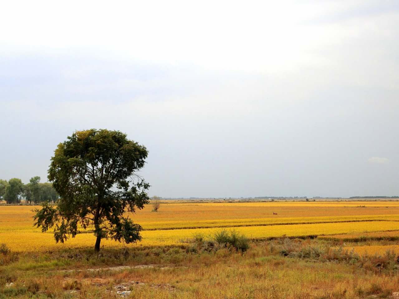 辽阔的田野静了,仿佛一张纸从地里长出,一直长到半天空,直愣愣地挺括着。接着又人欢马叫,一把把镰刀重新埋下头,饿羊似的扑向庄稼,倒下的庄稼变成捆,被马车满载而去。