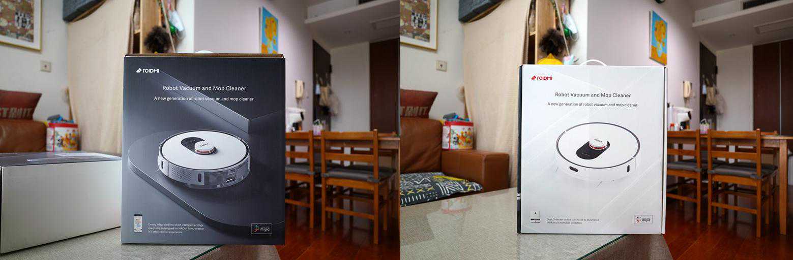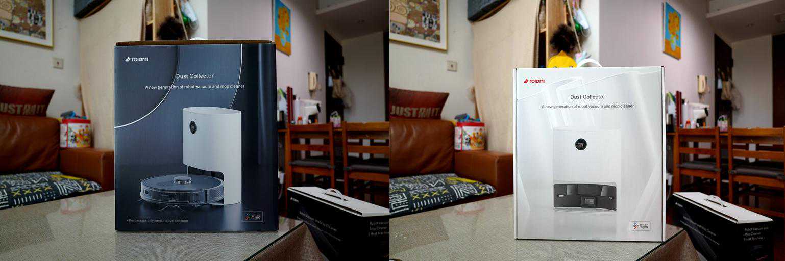 ▲睿米扫拖机器人EVEPlus的包装采用的充电集尘底座和扫地机分离包装。机器人EVEPlus支持米家APP接入同时也支持睿米的APP接入。
