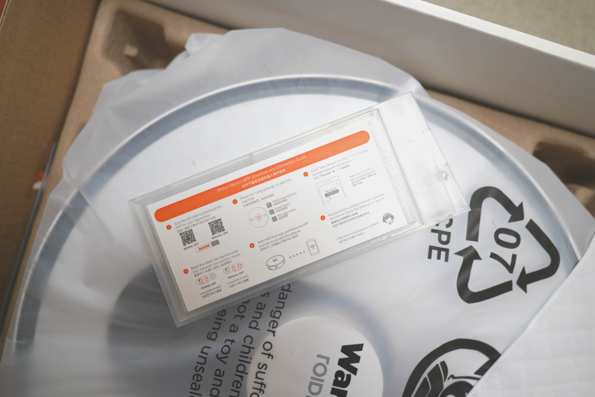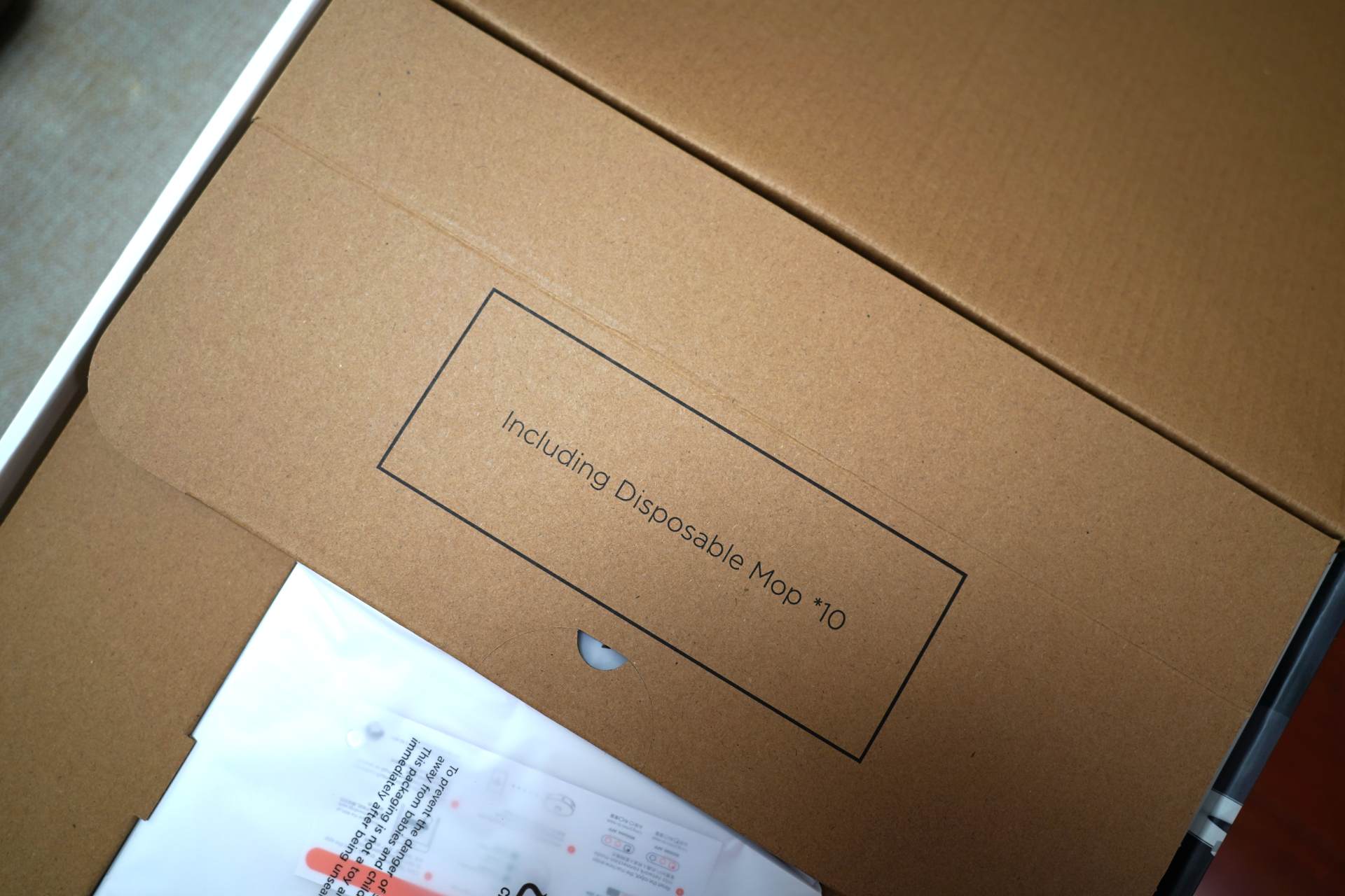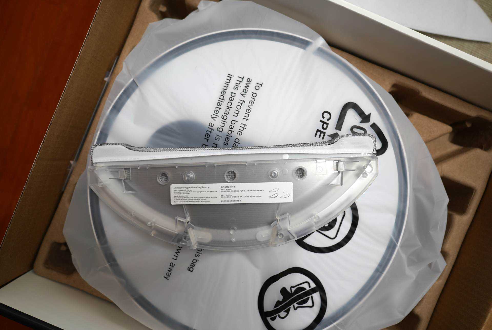 ▲睿米扫拖机器人EVEPlus开箱就看见附送的十个一次性拖布,不过不用担心,本身睿米扫拖机器人EVEPlus是自带抹布的,可以重复洗涤使用。