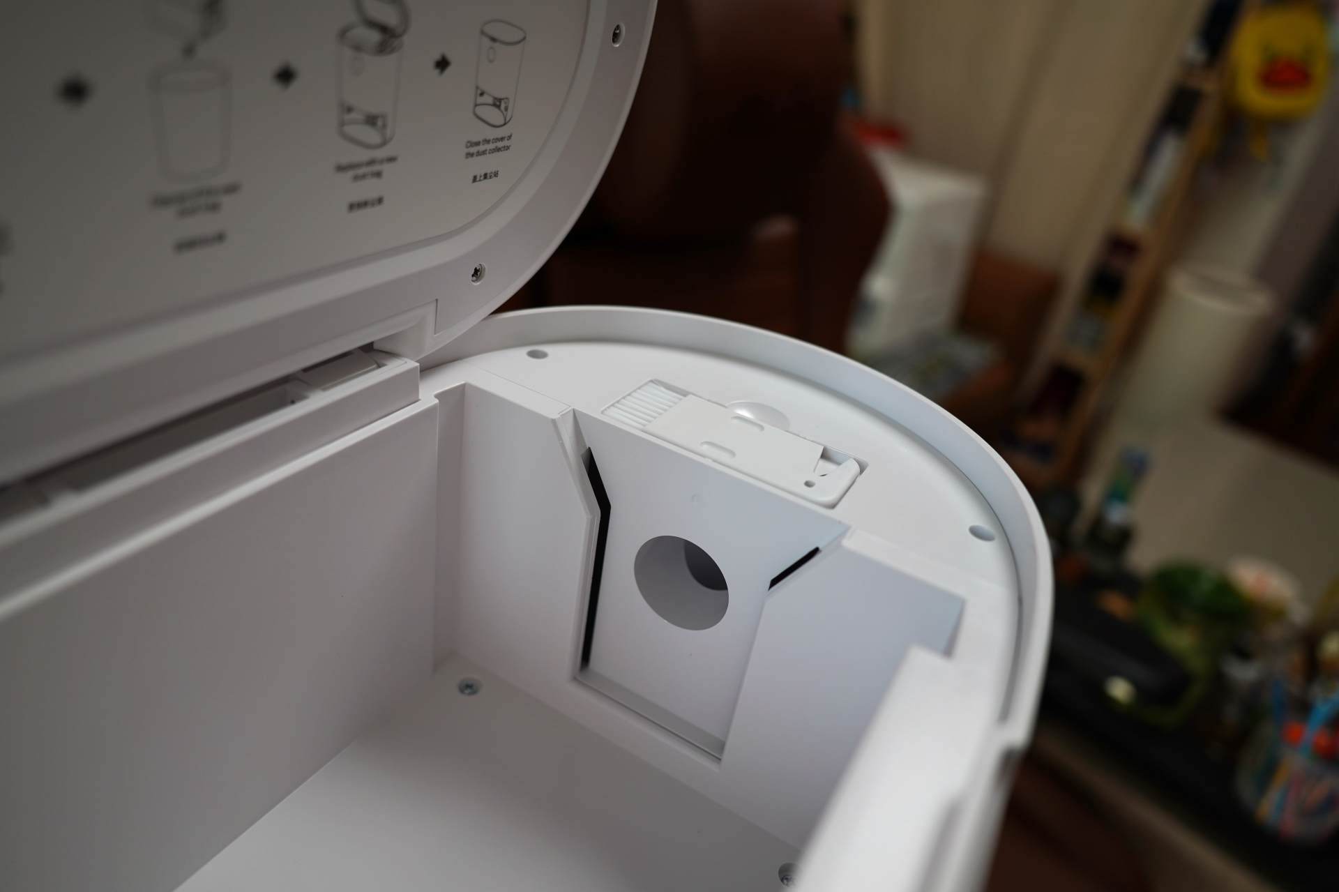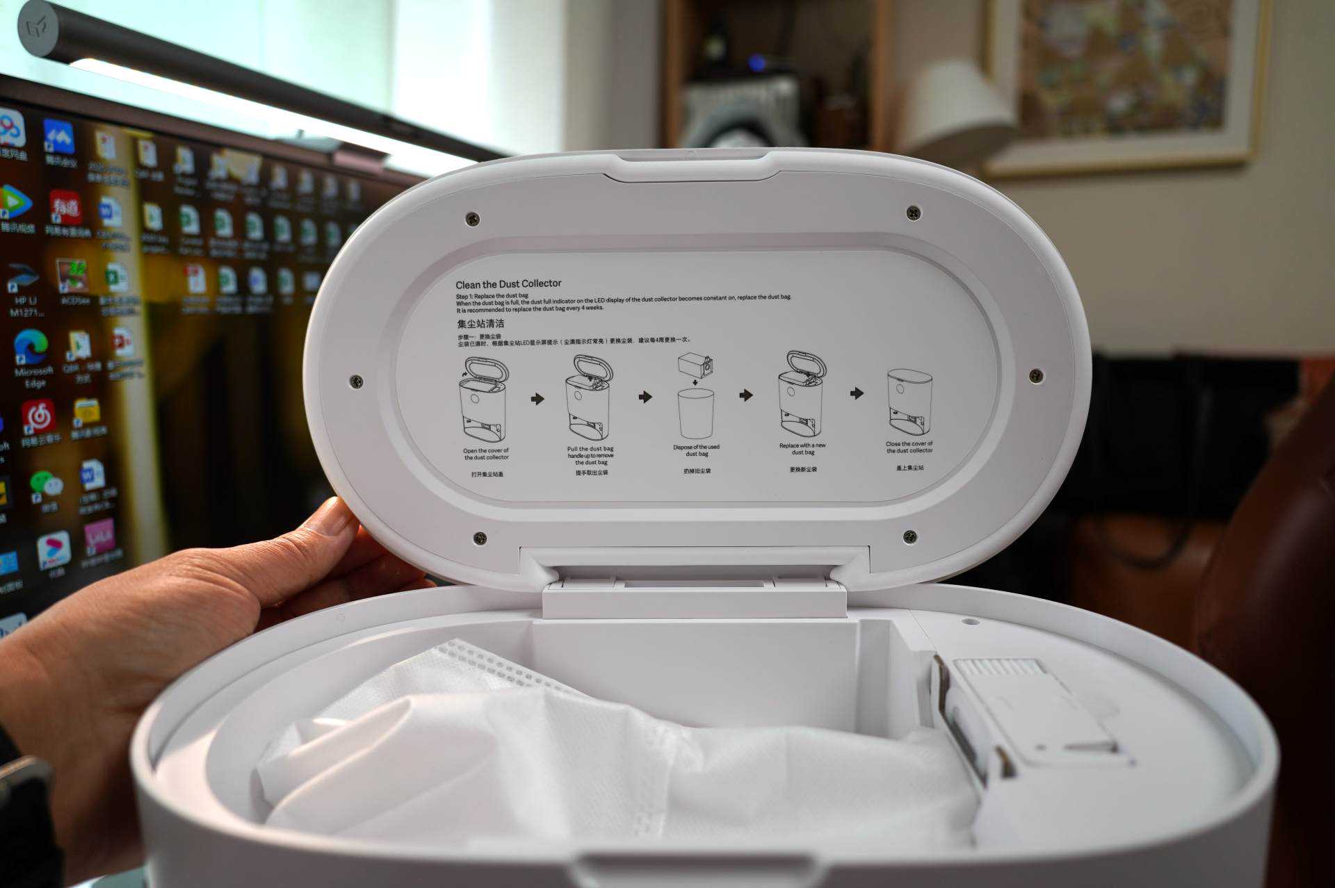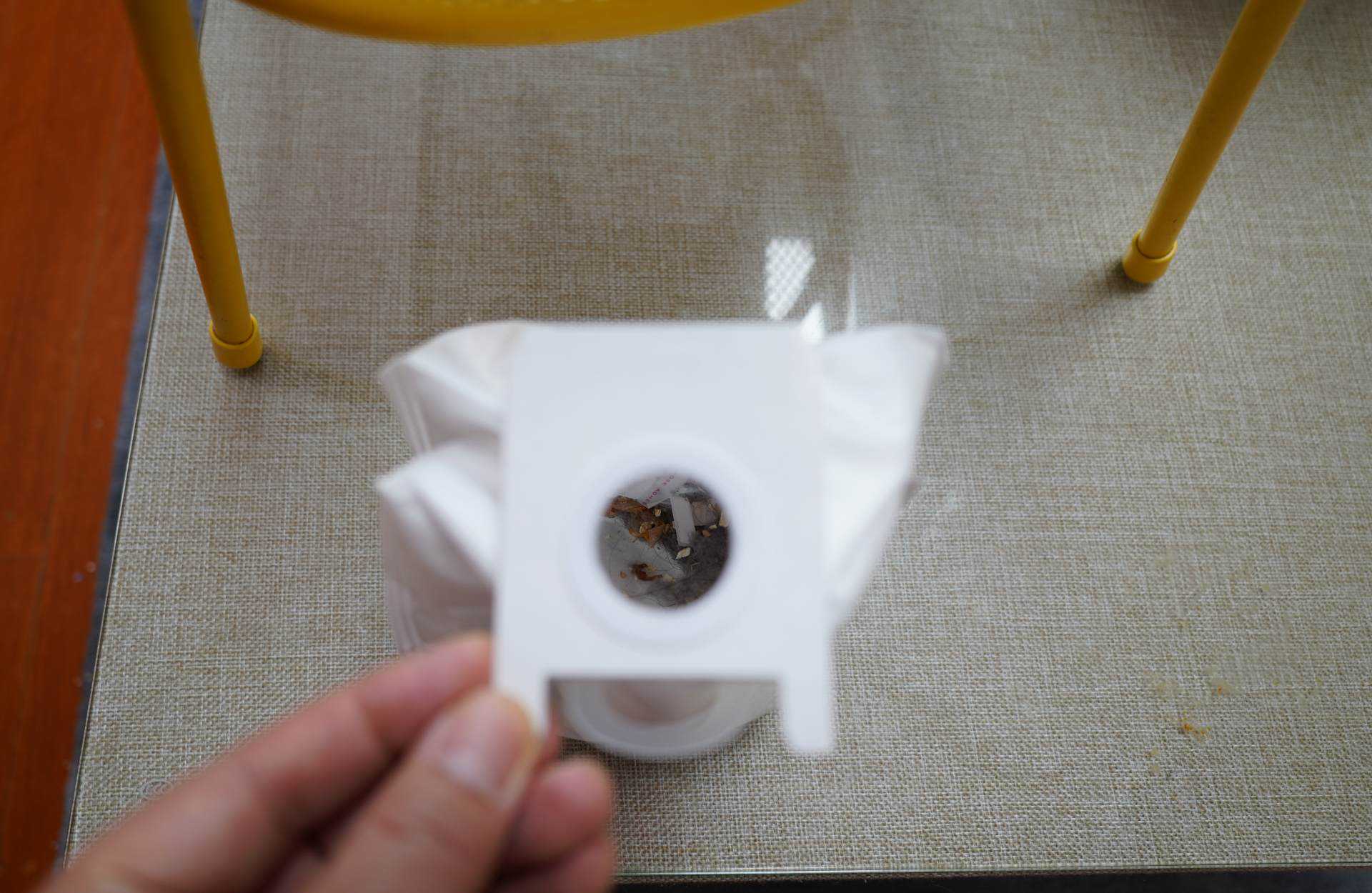 ▲集尘站内部的尘袋为3L,是睿米扫拖机器人EVEPlus内置尘盒的10倍,扫拖机器人的尘盒比较小,工作后回收一次的尘量最多为300ML,所以一个集尘袋可以积攒十次工作量的垃圾。由于每次不可能都是慢慢的300ML,所以基本一个3L的尘袋可以一个月替换一个。用完即丢,不脏手无污染。