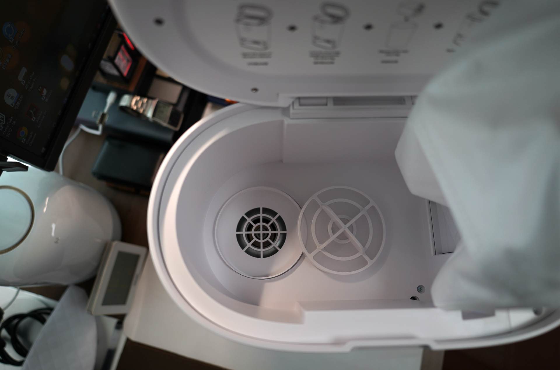 ▲滤芯盒要附送了一个替换滤芯盒,不过滤芯支持水洗清洁晾干后使用,每个滤芯盒上面都有安装和使用提示。避免更换滤芯之后用户无法获取说明书提示。