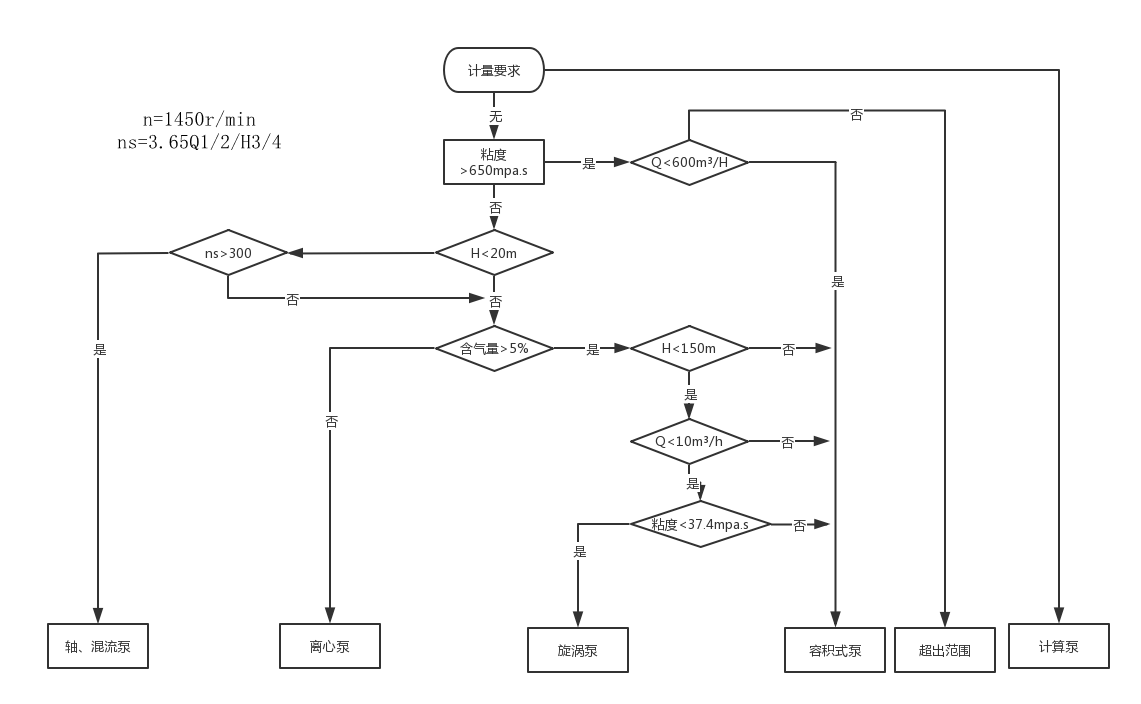 泵的选型就是根据泵的工作环境、条件,泵正常运行必需的性能参数,以及被输送介质的物理、化学性质全面地考虑泵装置系统中泵的技术性能指标、泵材质选用、电动机的匹配、密封的可靠性及节能、使用维护等综合经济指标的要求,在定型的泵产品中选择出最合适的泵类型与型号规格。
